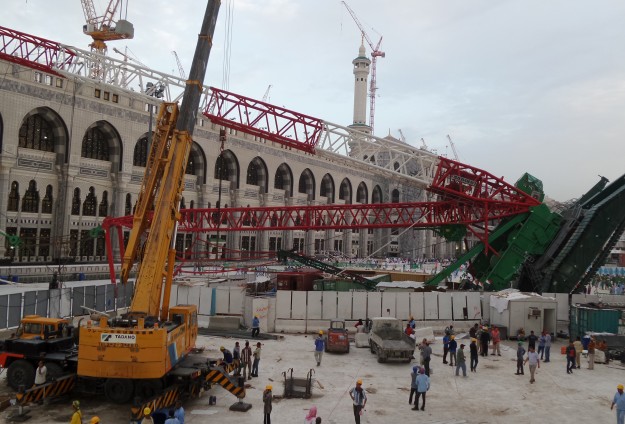 وأعلنت رئاسة شؤون المسجد الحرام والمسجد النبوي، أن "العواصف الشديدة والرياح القوية"، التي شهدتها مكة أمس الأول، تسببت بـ "سقوط جزء من إحدى الرافعات بالمسجد الحرام".