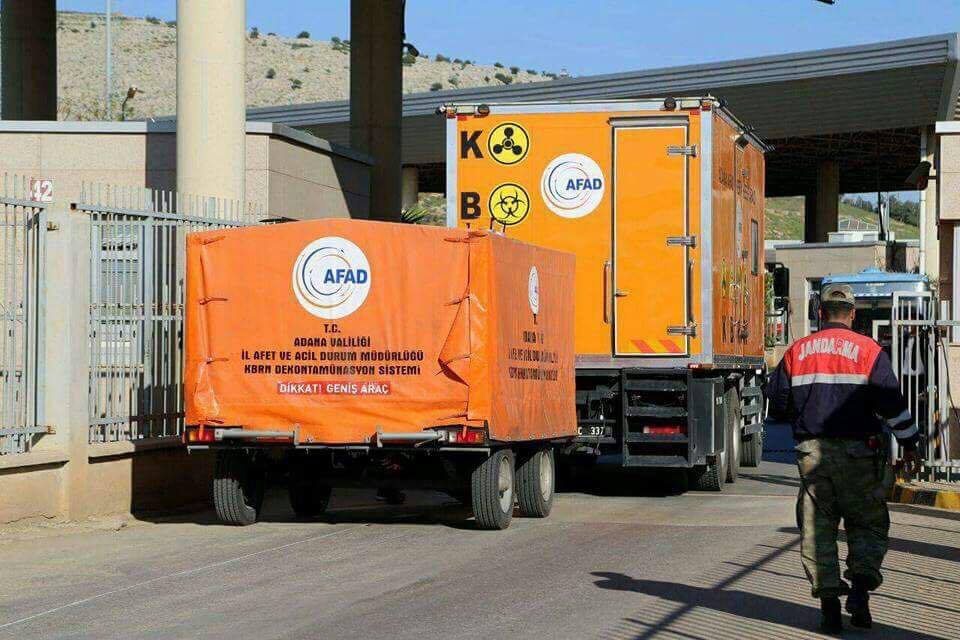 أرسلت هيئة الطوارئ والكوارث الطبيعية التركية "أفاد"، عربة مجهزة لكشف الإشعاعات الكيميائية والبيولوجية والنووية إلى معبر باب الهوى الحدودي، إثر مجزرة خان شيخون في ريف إدلب التي نفذتها طائرات النظام السوري بالأسلحة الكيميائية.