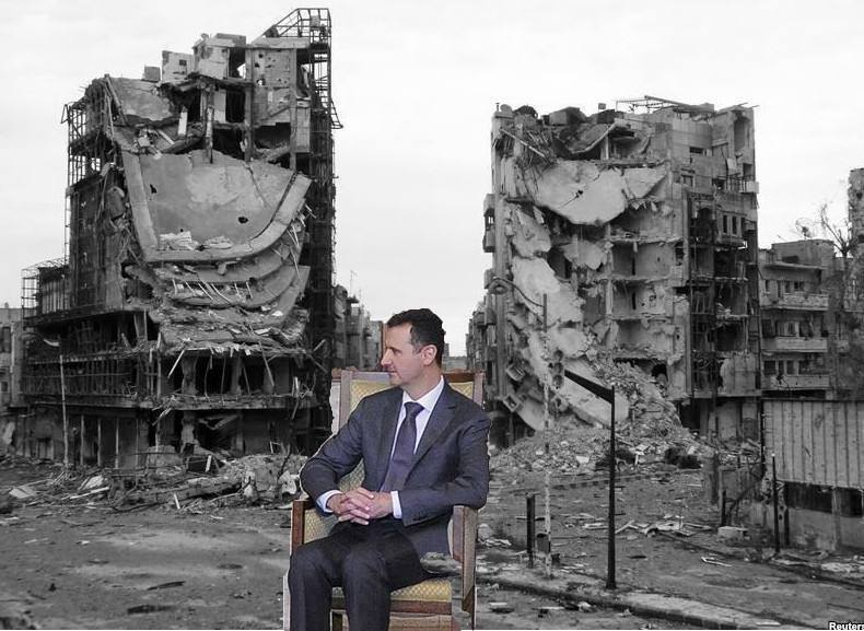 وإنّنا لو أردنا رسم الحالة السورية، نجد أنّ هناك نظاماً ديكتاتورياً يحاول البقاء في السلطة من خلال شنّ حرب على شعبه. كما نجد أنّ هناك ما يزيد على 400 ألف قتيل نتيجة هذه المحاولة وأكثر من عشرة ملايين نازح ومهجّر. ومع استمرار الوضع على هذه الشّاكلة، فقد ظنّ الجميع أنّ الأسد لن يستطيع الاستمرار في السلطة لفترة مطوّلة، فقد قامت جميع الدّول بالتّنديد بالمجازر التي إرتكبها النّظام السوري ضدّ شعبه عدا إيران وروسيا. فقد كانت البيانات الصّادرة في هذا الخصوص تنادي بوجوب رحيل الأسد عن السلطة.