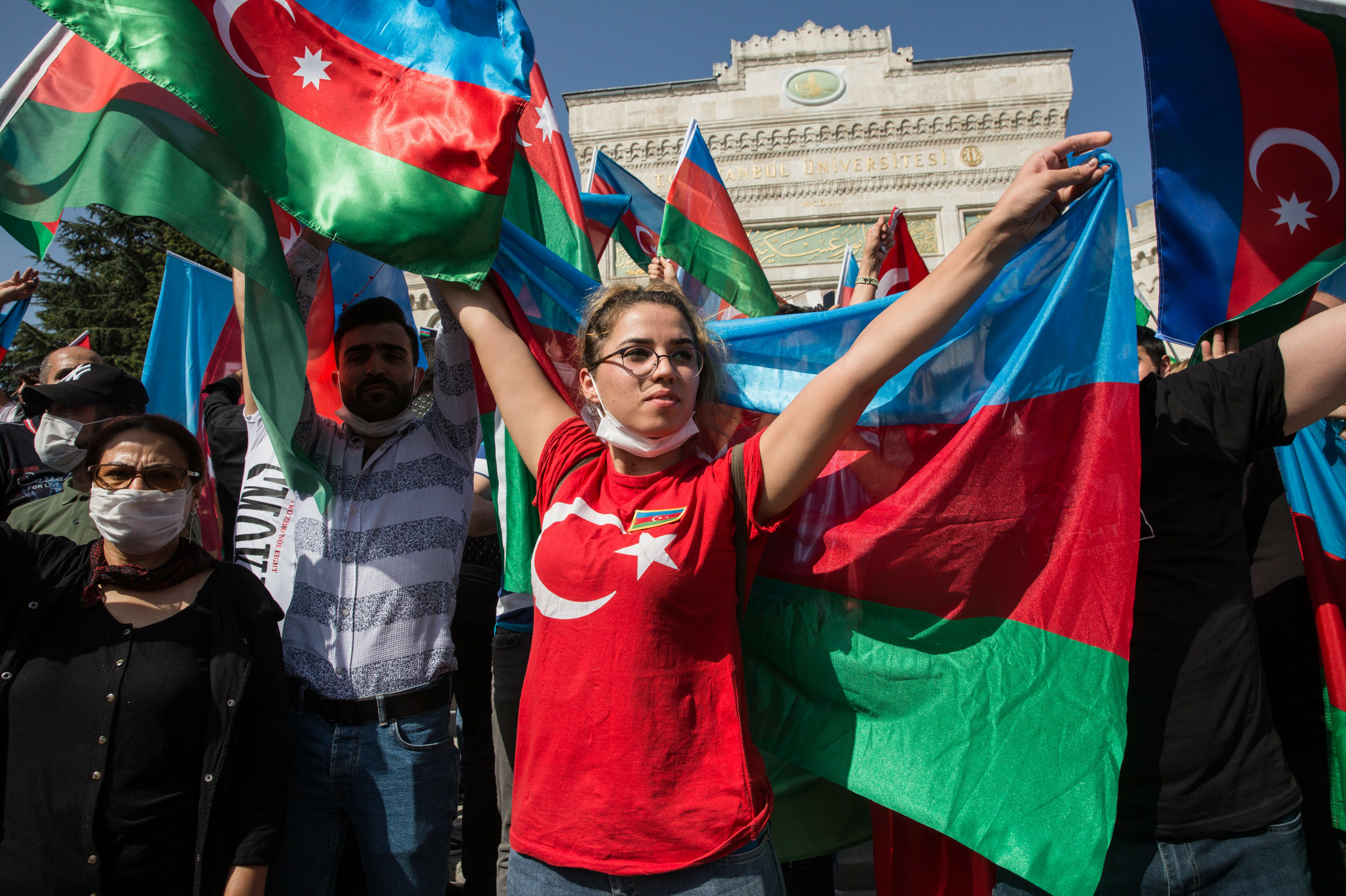 وفي اعتصام نظمتها الجالية الأذربيجانية بميدان بايزيد في إسطنبول، هتف المشاركون "أكبر جيش جيشنا" و"قره باغ ستكون لنا"، في خطوة لدعم جيش بلدهم في الحرب على أرمينيا.