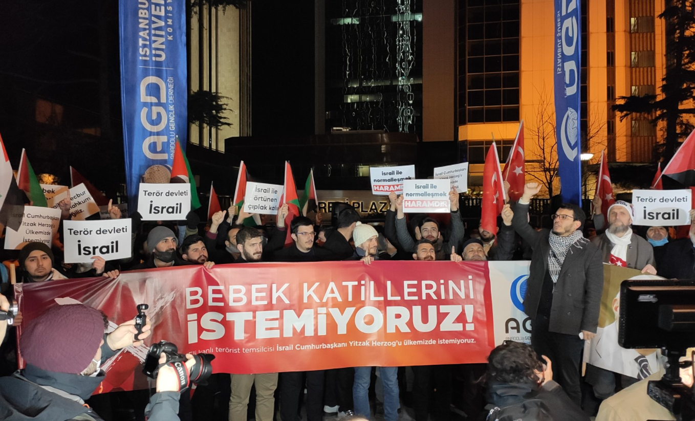 نظم نشطاء أتراك مظاهرة في مدينة إسطنبول، رفضاً لزيارة الرئيس الإسرائيلي، إسحاق هرتسوغ إلى أنقرة.