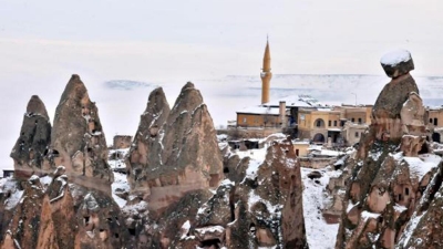 تركيا.. الثلوج ترحب بالسياح في كبادوكيا