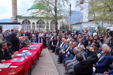 بالصور: جاويش أوغلو يطالب سكّان مسقط رأسه في أنطاليا بدعم الدستور الجديد