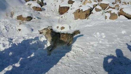 بالصور: العثور على ذئب متجمد في ولاية كارص التركية