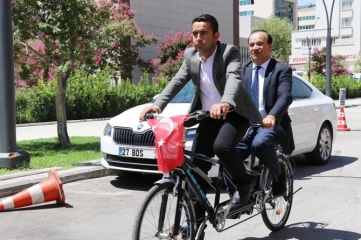 بالصور.. مسؤول تركي كفيف يفضل ركوب الدراجة الهوائية على السيارة الرسمية