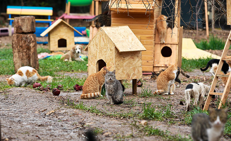 تؤخذ قطط الشوارع الباحثة عن الطعام والحب في شوارع أنطاليا إلى القرية المزخرفة بأماكن اللعب والملاجئ الملونة.