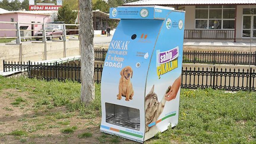 نشرت وزارة شؤون الغابات والمياه التركية، أجهزة تعمل بالمخلفات البلاستيكية والمعدنية، لتأمين الطعام والشراب لحيوانات الشوارع، في أحد أقضية ولاية أفيون قره حصار (غربي تركيا).