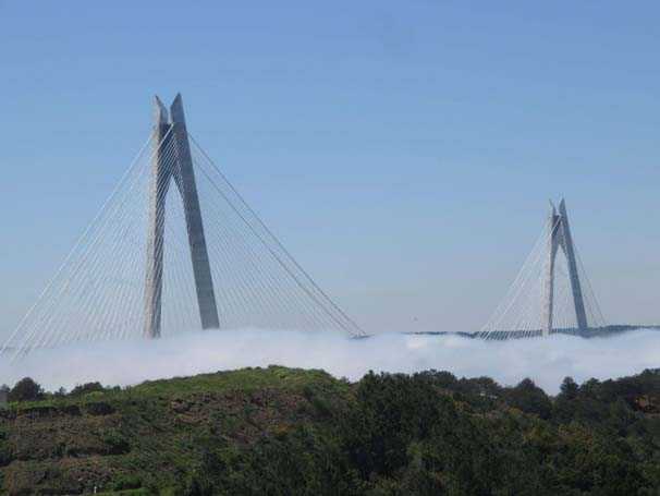 غطى الضباب جسر السلطان "ياووز سليم" في إسطنبول، مما عكس سحر وجمال مشاهد للجسر قلّ نظيرها.