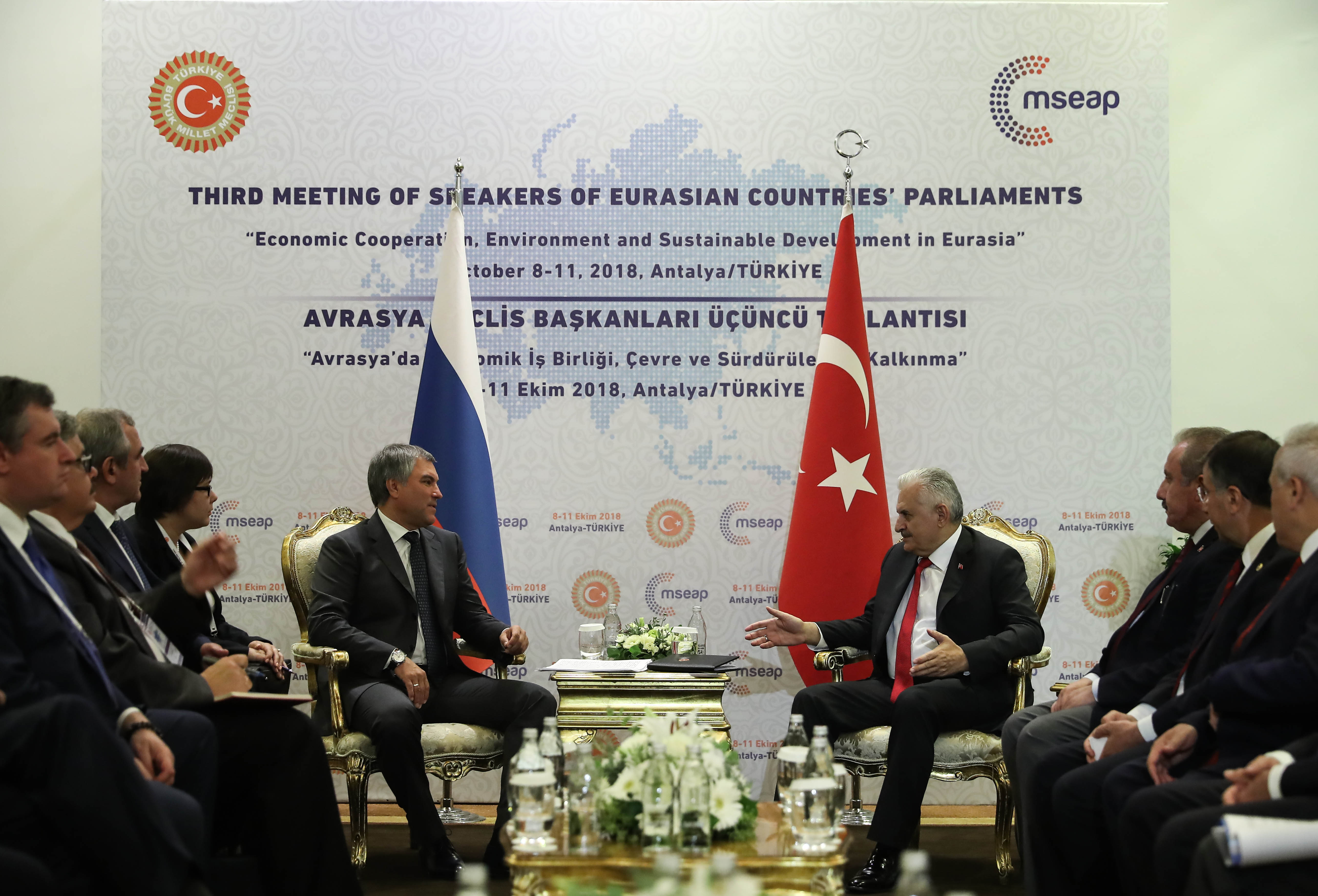 اقترح رئيس مجلس النواب الروسي، فياتشيسلاف فولودين، التوقيع على مذكرة تفاهم بشأن إنشاء لجنة برلمانية رفيعة المستوى بين تركيا وروسيا، خلال الاجتماع الثالث لرؤساء برلمانات دول أوراسيا.