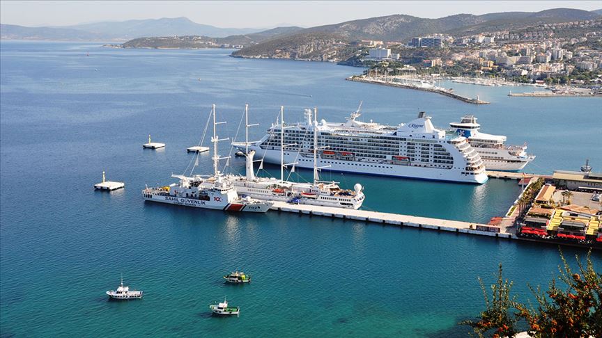 استقبل ميناء "إيجه بورت" بمنطقة "كوش أداسي" التابعة لولاية أيدن غربي تركيا، 3 سفن سياحية ضخمة، الثلاثاء.
