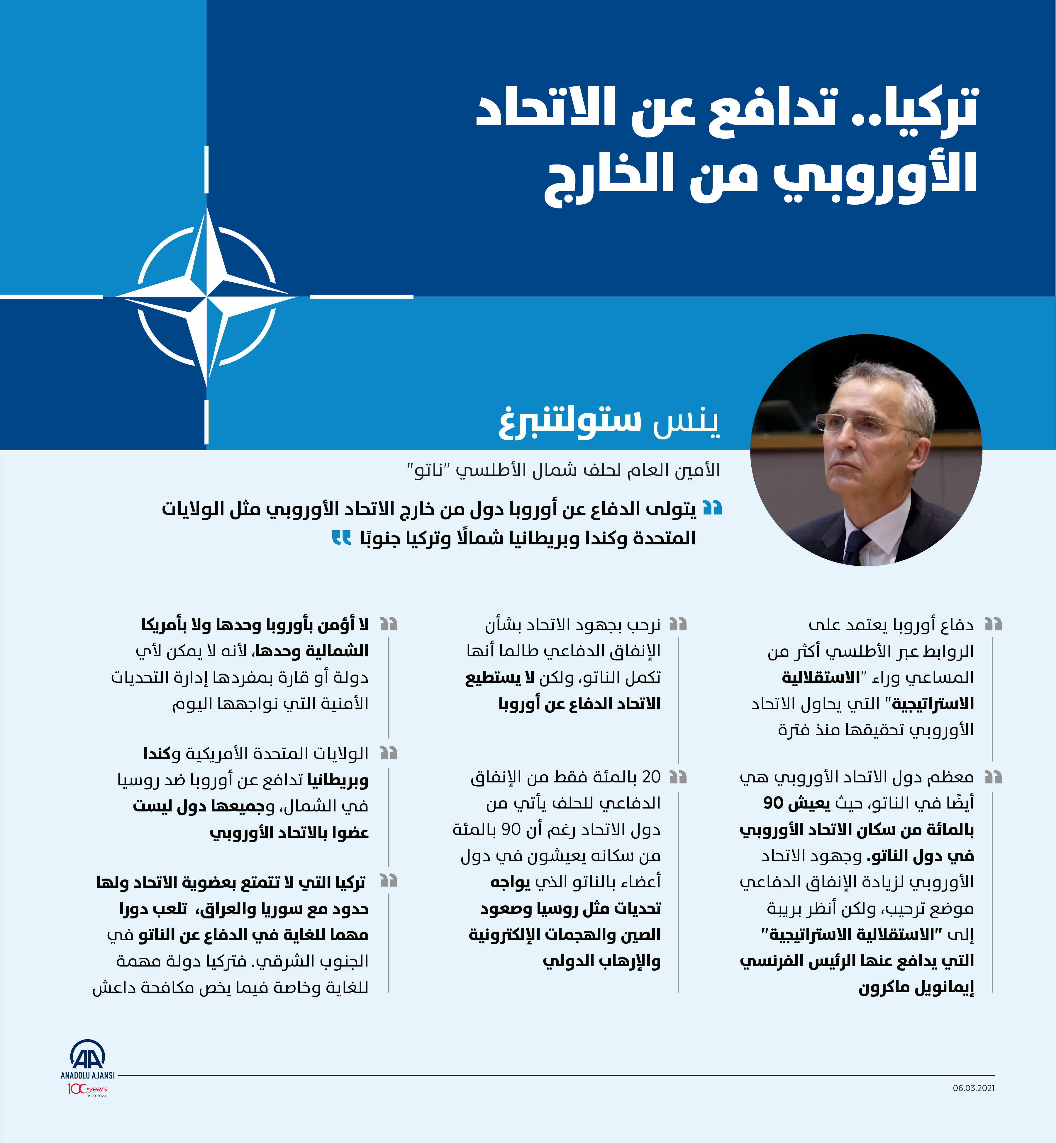 ستولتنبرغ: تركيا تدافع عن أوروبا رغم عدم عضويتها في الاتحاد