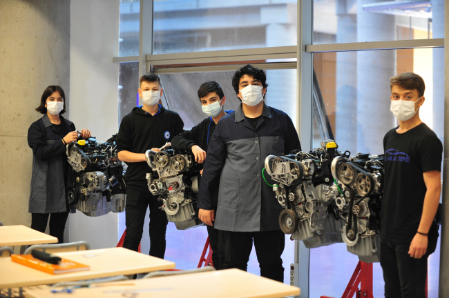 يشارك طلاب المدرسة الثانوية التقنية والمهنية الأناضولية، التابعة لاتحاد مصدّري السيارات في تركيا، بتلبية الاحتياجات الصناعية للسيارة المحلية، ويتلقّون من أجل ذلك تدريبات على المركبات الكهربائية والهيدروجينية و”الهايبرد” أو الهجينة بين الوقود النفطي والطاقة الكهربائية.