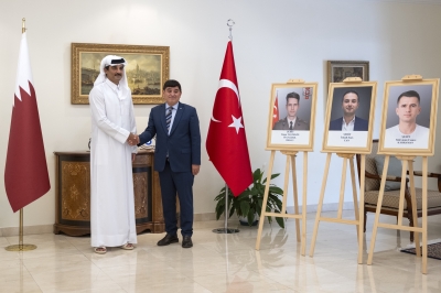 أمير قطر يزور السفارة التركية لتقديم العزاء في الشهداء الأتراك (صور)
