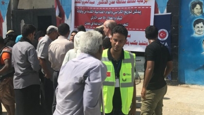 تركيا توزع كراسي متحركة وسلات غذائية على جرحى الحرب اليمنية