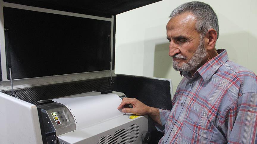 وتابع التنكايا: "السعادة التي غمرتني من هذا العمل، دفعتني بالبدء في العمل عام 1990، وبعد العمل 15 عام في هذا العمل حصلنا على ماكينة طباعة تخرج الحروف بشكل واضح وكبير، وقمنا بطبع 3000 نسخة من القرآن الكريم".