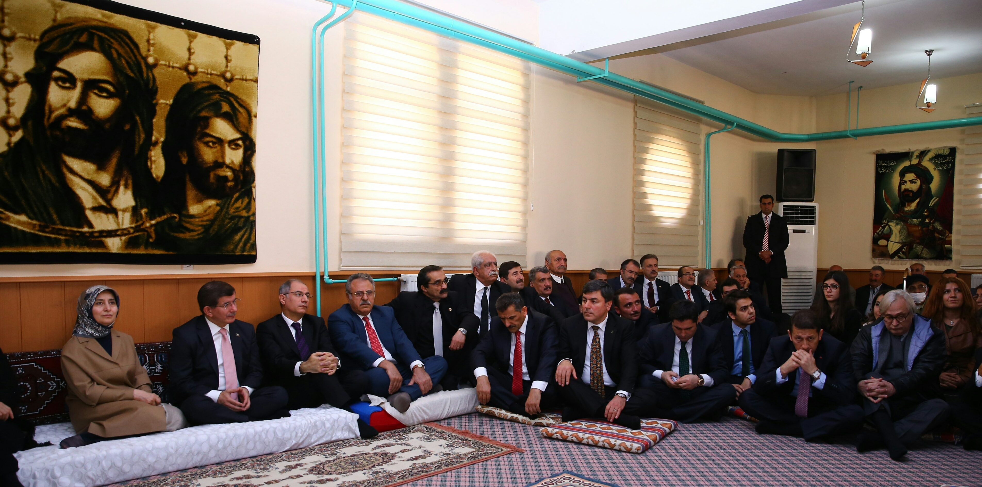 وكان في استقبال داوود أوغلو أمام البيت، رئيس جمعيّة المعابد العلوية "علي أكبر يورد" وعدد من رجال الدّين العلويّين المرافقين له.