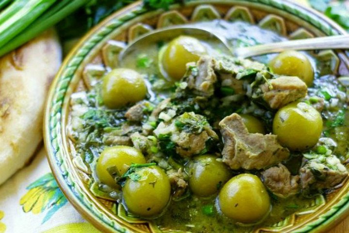 من الأطباق المميزة على مائدة الطعام في ماردين، وتتكون من قطع اللحم والخوخ الأخضر المسلوق.