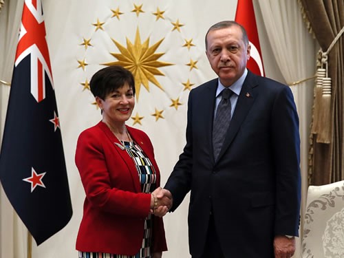 استقبل الرئيس التركي رجب طيب أردوغان، اليوم الخميس، الحاكم لنيوزيلندا باتسي ريدي، في القصر الرئاسي بالعاصمة أنقرة.