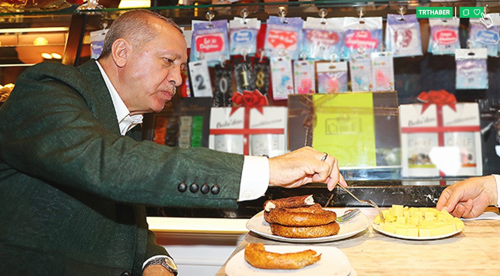 تناول الرئيس التركي رجب طيب أردوغان مرشح العدالة والتنمية والحركة القومية للانتخابات الرئاسية، الشاي والسميت (الكعك) التركي مع المواطنين في أحد المقاهي.