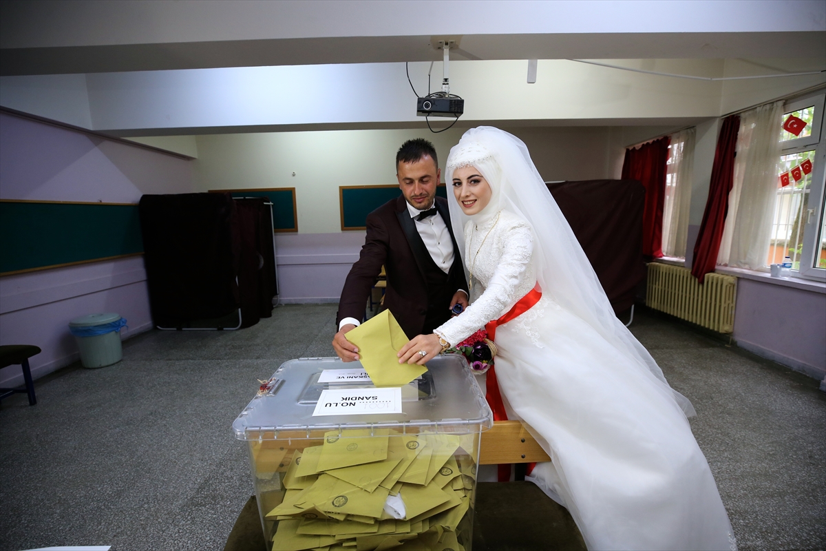 وفي مشهد آخر حضر أحد المواطنين في ولاية "قهرمان مرعش" جنوبي البلاد، إلى المركز الانتخابي مرتديا ملابس رسم عليها العلم التركي، فيما وفد عروسان إلى المركز الانتخابي بزي الزفاف قبل انطلاق حفل قرانهما، فأدليا بصوتيهما ليغادراها لاحقا إلى صالة الأعراس.