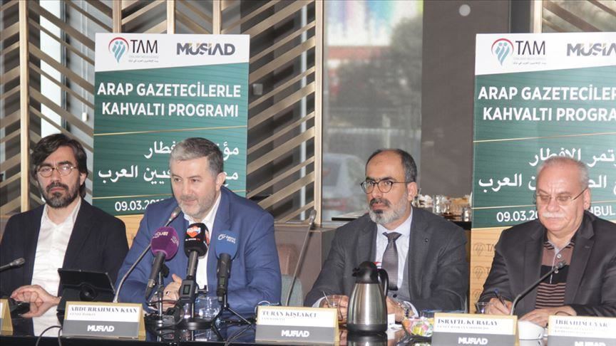 وحضر اللقاء الذي حمل عنوان "إفطار عمل مع الصحفيين العرب"، رئيس موصياد عبد الرحمن كان، ورئيس جمعية بيت الإعلاميين العرب طوران قشلاقجي، فضلا عن رجال أعمال أتراك وصحفيون عرب.