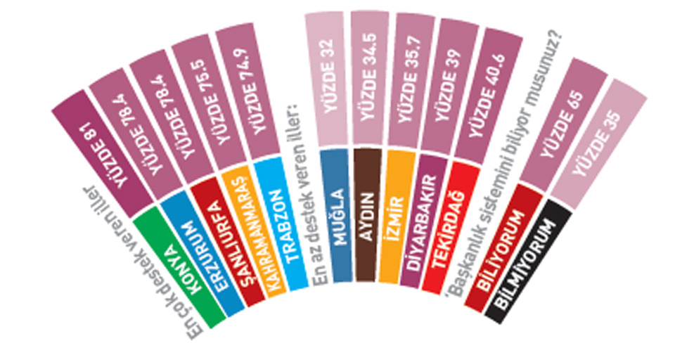 كما قامت الشّركة بإجراء تحليلٍ دقيق، قبل الإعلان عن النتيجة النّهائية لعملية الاستطلاع، حيث أعقبت ولاية كونيا كلّ من ولايات أرض روم وشانلي أورفا، بالإضافة إلى كهرمان مرعش وولاية طرابزون، من حيث كثرة الدّاعمين للنّظام الرّئاسي في تركيا.