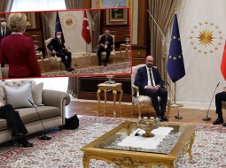 وكانت رئيسة المفوضية الأوروبية تعرضت لموقف محرج خلال ذلك الاجتماع، بعدما اضطرت للجلوس على أريكة قبالة وزير الخارجية التركي مولود جاويش أوغلو، الذي يعد منصبه أدنى منها في التسلسل الهرمي للبروتوكول، وذلك بعدما جلس ميشال سريعا على الكرسي الرئيسي إلى جانب الرئيس أردوغان.