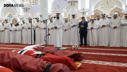 شاهد.. لحظات تشييع الشهداء الأتراك في الدوحة بمشاركة أمير قطر