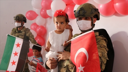 الجيش التركي يحتفل بعيد ميلاد الطفلة السورية "بينار"