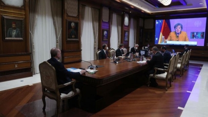 أردوغان يبحث ملف شرق المتوسط مع ميركل ورئيس الوزراء الإيطالي