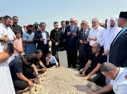 قبل مغادرتنا قطر بيوم واحد، توجهنا إلى مقبرة لوسيل، التي تدفن فيها أفراد العائلة المالكة فقط. رغم أن نظام الملاحة توقف عن تحديد مسارنا بعد نقطة معينة، إلا أننا تمكنا من الوصول إلى المنطقة التي تقع فيها المقبرة بعد مسافة 15 كيلومترًا. كنا نعتزم زيارة قبر الشهيد إسماعيل هنية، ولكن لم نتمكن من الدخول. فقد انتهى الطريق، وأخبرنا أحد الموظفين من المبنى الخارجي خلف البوابة الحديدية المغلقة بأن دخول مقبرة "الإمام المؤسس" لا يسمح به إلا في أيام معينة وبأذون خاصة. لم يصدق أنني تركي وأخبرني أنني أبدو كعربي. ورغم حديثي معه على أمل أن يسمح لنا بالدخول، إلا أنه أصر على عدم السماح لنا. في هذه الأثناء، وصل زوار آخرون وحاولوا الدخول أيضًا، لكنهم رُفضوا مثلنا، لذلك اقتنعنا وعدنا أدراجنا بعد التقاط بعض الصور بالقرب من السياج. ثم توجهنا إلى مكان آخر خارج الدوحة، كانت هذه المرة الرابعة التي نزور فيها خيمة العزاء مع مراسلنا براق دوغان خلال ثلاثة أيام.