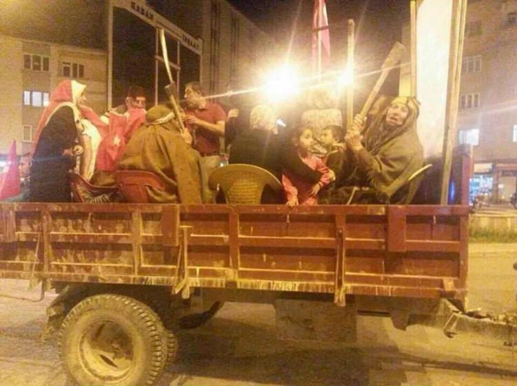وأظهرت صورة بثتها وسائل إعلام تركية امرأة تقوم بنقل المتظاهرين إلى الميادين للوقوف في وجهة الانقلابيين.
