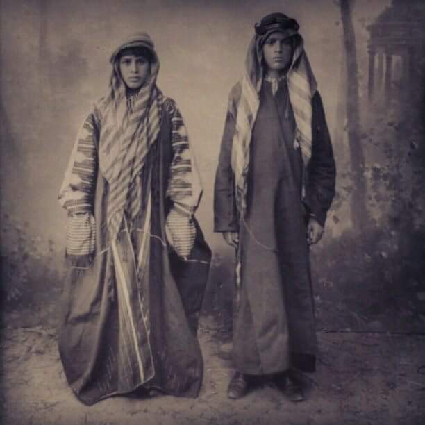 وفي المقابل التقطت صورة للطلبة أمام المدرسة مرتدين زيهم المدرسي ذات النمط اﻷوروبي المعتدل، المكون من معاطف طويلة تصل إلى الفخذ، مع خمسة أزرار مثبتة بإحكام للرقبة، وتغطي البنطلون، فضلا عن رمز اﻷفندي الممثل بالطربوش المنتشر في كل صوب.