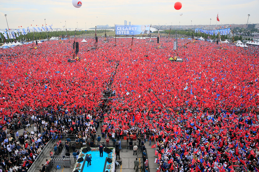 وأشارت في تقرير إلى امتلاء ساحة "يني كابي" الشاطئية في إسطنبول قبل يومين بمئات الآلاف من أنصار الرئيس التركي رجب طيب أردوغان ضمن حشد مليوني دعا له حزب العدالة والتنمية الحاكم، حيث رسموا بحشودهم صورة لأكبر تجمع حزبي للانتخابات.