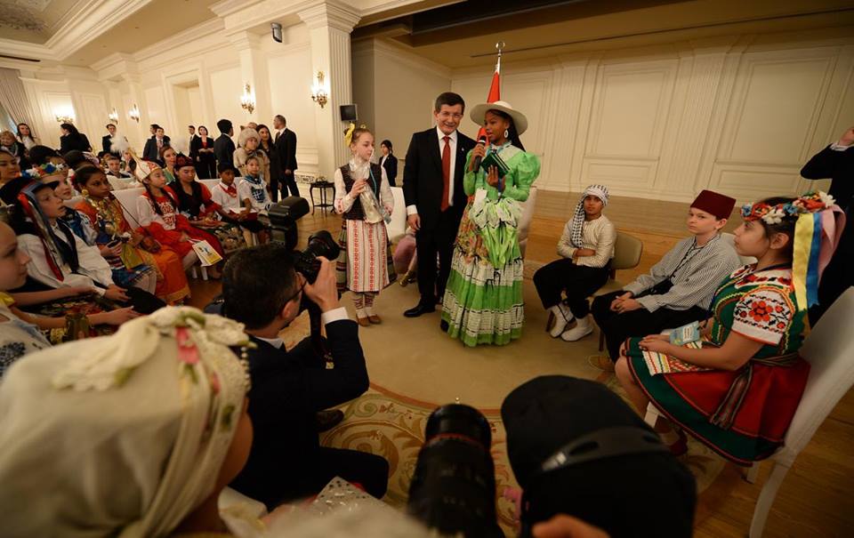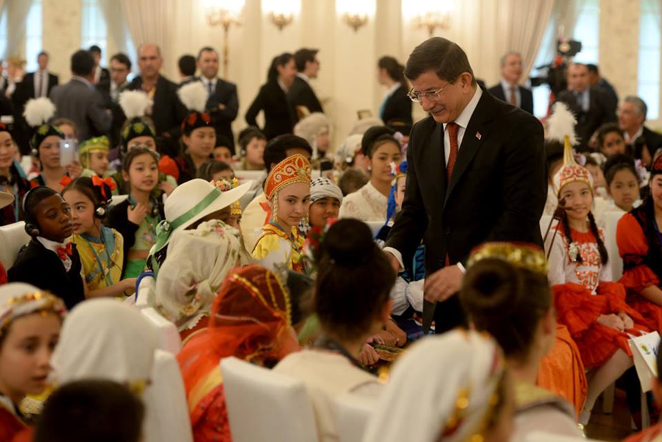 جاء ذلك خلال استقبال داود أوغلو، في قصر "تشانق قايا" لرئاسة الوزراء في أنقرة، أطفال من جنسيات مختلفة، يشاركون في مهرجان الأطفال الدولي الذي تقيمه هيئة الإذاعة والتلفزيون التركية (TRT ) بمناسبة عيد الطفولة والسيادة الوطنية في تركيا، الذي يوافق 23 إبريل/ نيسان.