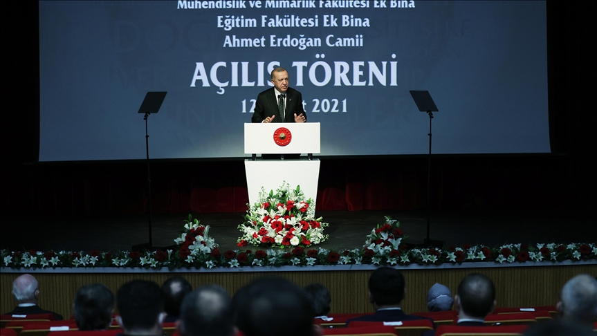 جاء ذلك في كلمة خلال مشاركته الجمعة، في مراسم افتتاح مبنيين ملحقين بكليتي الهندسة والتربية في جامعة "رجب طيب أردوغان"، بولاية ريزة، شمالي البلاد.