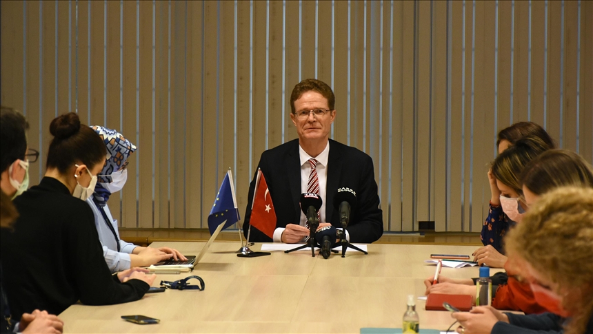 جاء ذلك في كلمة له خلال مؤتمر صحفي عقده، في مبنى بعثة الاتحاد بالعاصمة التركية أنقرة، لتقييم قرارات قمة الزعماء، التي وصفها بـ"القرارات المهمة من جوانب عديدة".