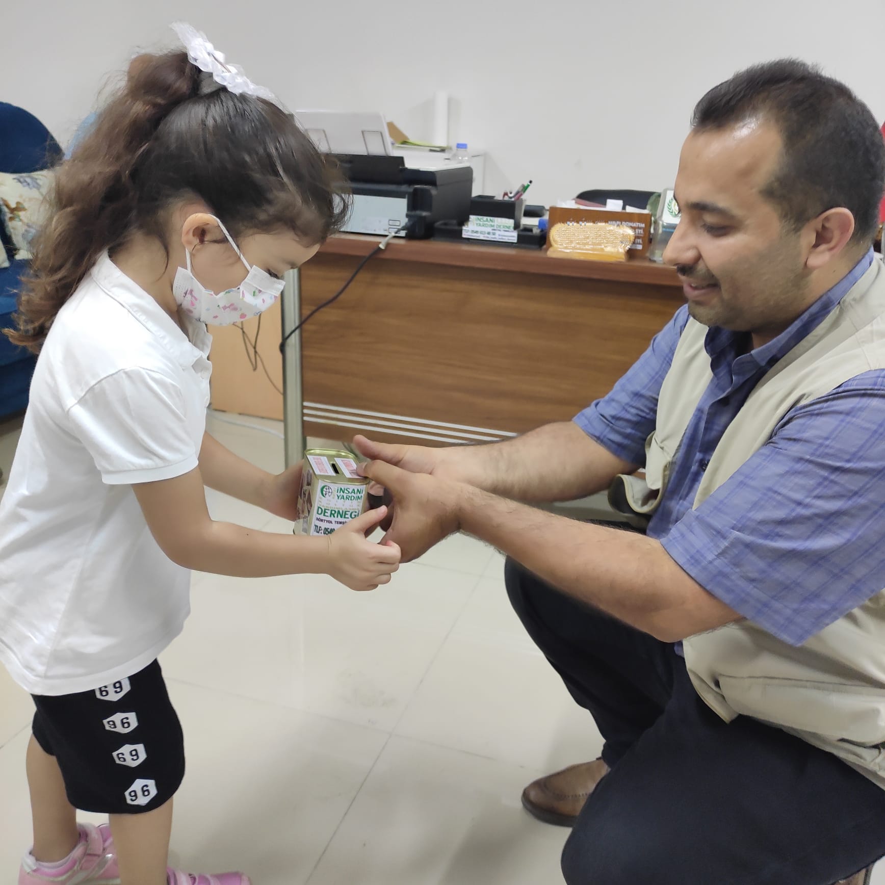 وتوجهت "غوموش" البالغة من العمر 5 سنوات، إلى فرع هيئة الإغاثة الإنسانية "İHH" في قضاء "دورت يول" بولاية هطاي، جنوبي تركيا، حيث قدّمت مدخراتها للهيئة.