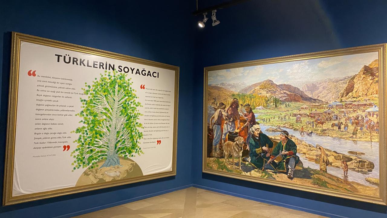 وتلقي أقسام قاعات المتحف الضوء على الحروب والفترات والحوادث المهمة في التاريخ التركي. ترحب "قاعة تأسيس الجيش التركي" بزوارها، عارضة لوحة أنساب الأتراك، بالإضافة إلى صورة ديوراما رائعة تصف مرور الأتراك عبر سور الصين العظيم، كما يحتوي على لوحات زيتية لأعمال ثقافية تركيا تنتمي لآسيا الوسطى مثل قصص ديده كوركوت، وملحمة أرغنكون.