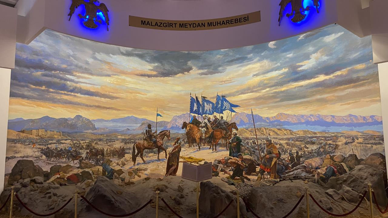 تُعرض في قاعة اللوحات الزيتية معركة ميريوكفالون، وبانوراما معركة ملاذكرد، وتمثال كارامان أوغلو محمد باي، صاحب المقولة: "اعتبارا من اليوم لن تستخدم أي لغة أخرى في البرلمان والديوان ونزل الدراويش وفي أي مكان ما عدا اللغة التركية".