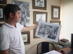 التقت قناة “TRT خبر” بالفنان دنيز ساغديتش، في ورشته بإسطنبول، التي يخيط فيها الأزرار ويلصق البلاستيك والكابلات، كما تمتلىء جميع جدرانها بلوحات أشخاص ضخمة، يلاحظ الناظر إليها بأن عيونهم تنظر إليه وبأنها مصنوعة من أشياء مختلفة عن بقية اللوحات.