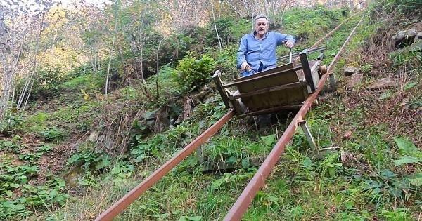 أنشأ فني الآلات المتقاعد حسين قاضي أوغلو، المقيم في منطقة شديدة الانحدار في طرابزون شمال شرقي تركيا، نظام سكة حديدية بعربة كهربائية، يبلغ طولها 110 أمتار، على أرض شديدة الانحدار لا يوجد بها طرق تسمح للسيارات بالمرور إلى منزله.