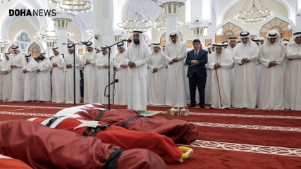 شاهد.. لحظات تشييع الشهداء الأتراك في الدوحة بمشاركة أمير قطر
